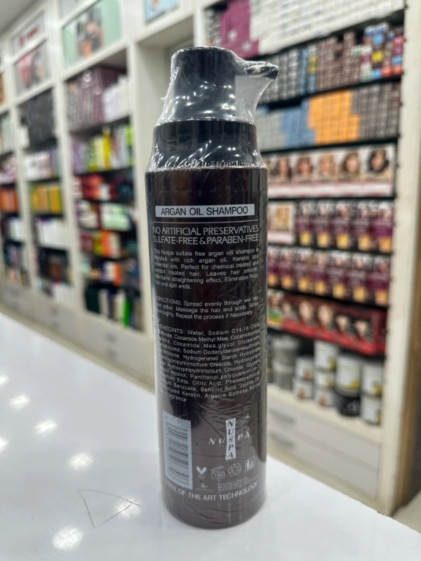 Argan Oil Sulfate-Free Shampoo gently cleanses while nourishing with Moroccan argan oil, rich in vitamin E and fatty acids. Hydrates dry, damaged hair, reduces frizz, enhances shine, and strengthens strands. Ideal for color-treated, curly, or sensitive scalps—paraben-free and silky smooth.