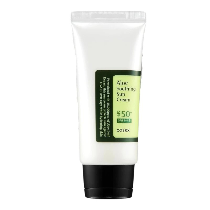 The COSRX Aloe Soothing Sun Cream SPF 50 PA+++ is a lightweight, hydrating sunscreen that provides broad-spectrum protection against harmful UVA and UVB rays while keeping the skin nourished and comfortable. Enriched with aloe vera leaf extract (55,000 ppm), it soothes and hydrates the skin, making it perfect for sensitive, dry, or sun-exposed skin types. Its creamy yet non-greasy texture blends easily, leaving no white cast, making it ideal for daily wear under makeup or on its own. This multifunctional sun cream not only protects against sun damage but also helps prevent dryness, irritation, and premature aging caused by UV exposure. With consistent use, skin feels refreshed, moisturized, and protected all day long.