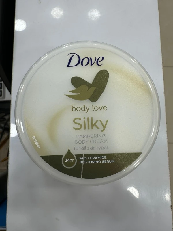 Dove Body Love Silky Pampering Body Cream deeply nourishes dry skin with shea butter and vanilla fragrance. Its rich, creamy formula provides 48-hour hydration, leaving your skin silky-soft, glowing, and beautifully scented without any greasy residue.