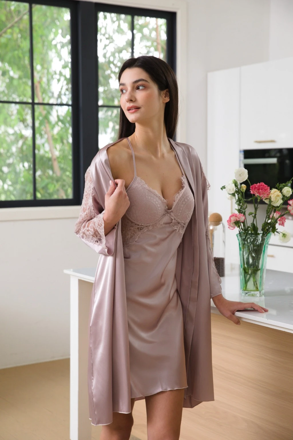 The flattering, mid-length silhouette is crafted to make you look confident, graceful, and effortlessly sexy. Whether you want a chic bedtime look or something romantic for a special night, this satin nightdress set has it all.
