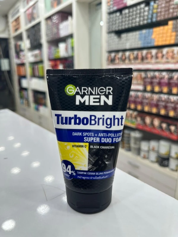 Garnier Men TurboBright Super Duo Foam is engineered for men seeking visible skin brightening and deep pore cleansing. This unique formula combines the power of icy minerals and black charcoal to target dark spots, reduce shine, and tighten pores for a refreshed, brighter look. With a creamy duo-foam texture, it thoroughly eliminates dirt, oil, and impurities while visibly improving skin tone and clarity. Dermatologically tested, it delivers fast, effective results and is gentle enough for daily use—even for men with dull or uneven complexions.