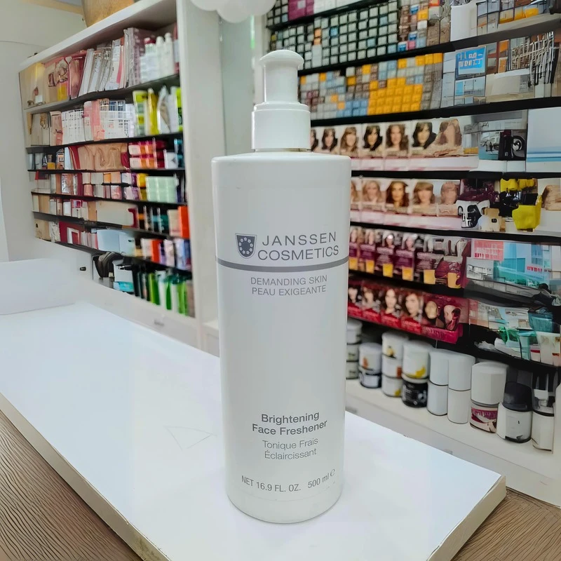 Janssen Cosmetics Brightening Face Freshener is a refreshing, alcohol-free toner designed to complete the cleansing process while enhancing skin radiance. Specially formulated for all skin types, it gently removes any remaining traces of cleanser, balances the skin’s pH, and leaves the complexion feeling fresh, smooth, and revitalized.
