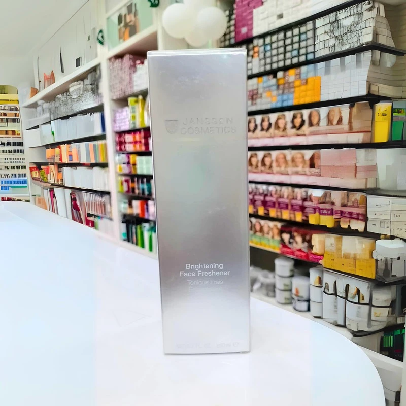 Janssen Cosmetics Brightening Face Freshener is an alcohol-free toner specially formulated to refresh, hydrate, and brighten the skin after cleansing. This gentle yet effective formula balances the skin’s natural pH, removes any leftover impurities, and preps the complexion for serums, moisturizers, and treatments, ensuring maximum absorption and effectiveness.