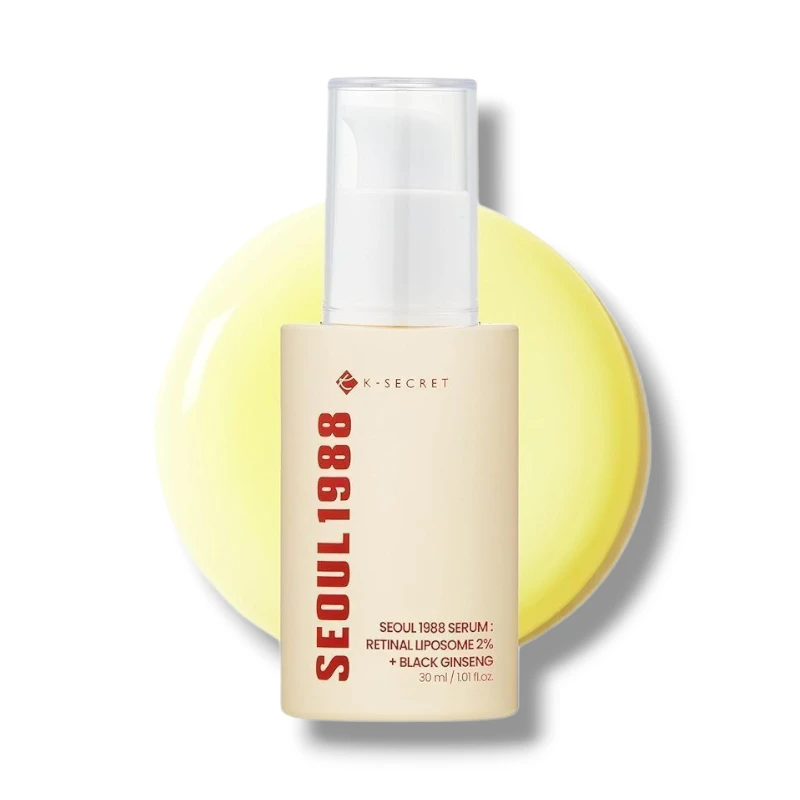 KSecret – SEOUL 1988 Retinal Liposome + Ginger Ginseng Serum is a high-performance Korean anti-aging serum formulated to target fine lines, uneven texture, dullness, and loss of firmness. Powered by advanced retinal liposome technology, this serum delivers effective skin renewal while minimizing irritation, making it suitable for consistent use. The liposome system helps retinal penetrate more steadily into the skin, improving cell turnover and collagen support for visibly smoother, firmer-looking skin.