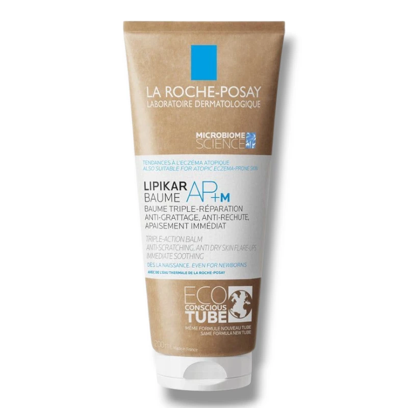 La Roche-Posay Lipikar Baume AP+M Triple Action Balm is an intensive repairing moisturizer specially formulated for very dry, sensitive, eczema-prone and itch-prone skin. This dermatologically tested balm provides 48-hour hydration while helping to rebalance the skin’s microbiome for long-term comfort. Its advanced AP+M triple-action technology works to soothe itching, repair the damaged skin barrier, and prevent recurring dryness.