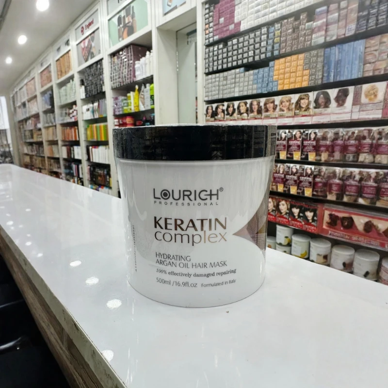 Lourich Professional Keratin Complex Hydrating Argan Oil Hair Mask restores deeply damaged and dry hair with keratin complex and argan oil. It hydrates, smooths, and repairs, leaving hair silky, shiny and resilient—perfect for a luxurious, salon-level finish.