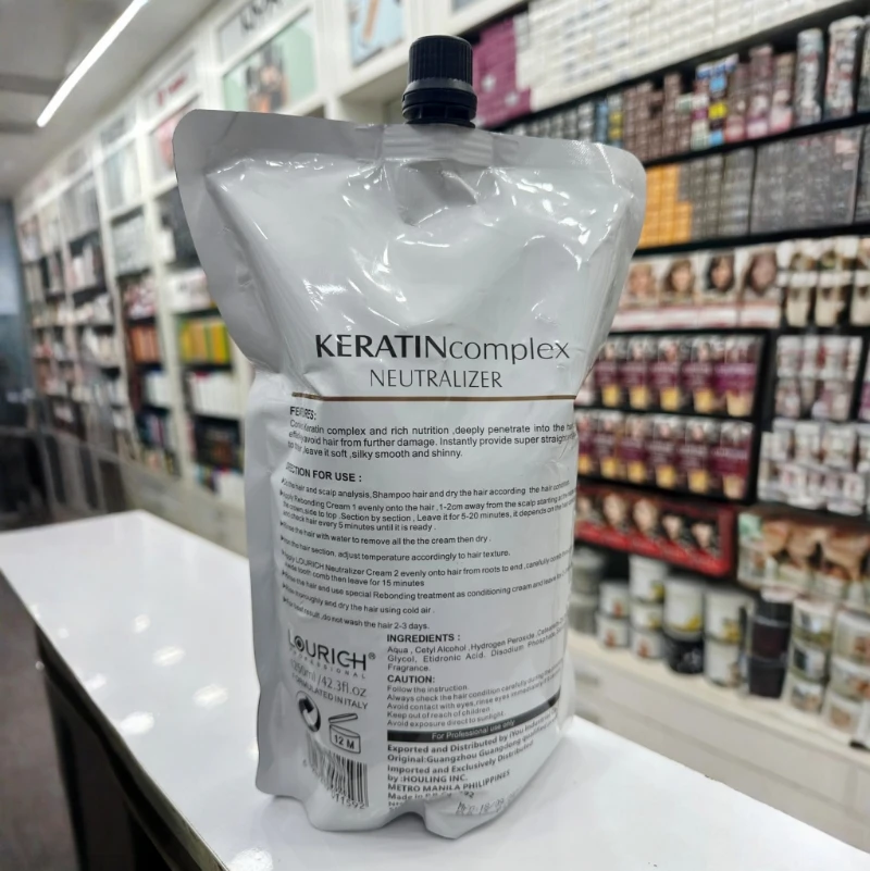 Lourich Professional Keratin Complex Neutralizer locks in your keratin rebonding treatment with a bond-sealing keratin complex. It restores structure, delivers glossy smoothness and extends sleekness while protecting chemically-treated hair—ideal for maintaining polished, healthy locks post-straightening.