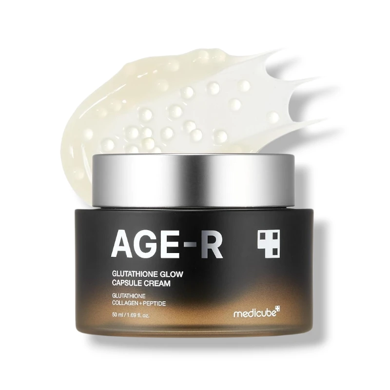 Medicube Age-R Glutathione Glow Capsule Cream is a premium brightening and anti-aging moisturizer designed to deliver visible glow, even skin tone, and deep hydration. This innovative Korean skincare cream features encapsulated glutathione beads suspended in a silky gel-cream base, allowing fresh activation upon application. As the capsules melt into the skin, they release powerful brightening and antioxidant ingredients that help reduce dullness, pigmentation, and uneven complexion.