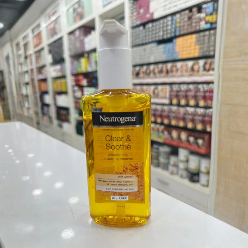 Neutrogena Clear & Soothe Micellar Jelly Makeup Remover is a unique, lightweight cleanser formulated to gently yet effectively remove makeup, dirt, and excess oil from spot-prone and sensitive skin. Enriched with turmeric extract, known for its soothing and calming properties, this micellar jelly lifts away impurities without over-drying or irritating the skin. Its refreshing gel-to-liquid texture transforms upon contact with the skin, leaving it clean, soft, and balanced. The micellar technology works like a magnet to attract and dissolve makeup—even waterproof formulas—while maintaining the skin’s natural moisture barrier. Perfect for daily use, it helps reduce redness, soothe irritation, and promote a clearer, more even complexion. Suitable for sensitive and acne-prone skin, it provides gentle yet effective cleansing that refreshes and comforts the skin after every use.
