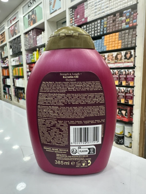 The OGX Strength & Length Keratin Oil Shampoo is designed to strengthen and protect weak, brittle, or damaged hair, helping you achieve longer, healthier-looking locks. Enriched with a fortifying blend of keratin proteins and argan oil, this shampoo helps reinforce each strand, reducing breakage and split ends caused by daily styling and environmental stress. The nutrient-rich formula deeply nourishes and smooths the hair cuticle, leaving it soft, shiny, and resilient. Its luxurious lather gently cleanses without stripping natural moisture, helping maintain the perfect balance between strength and hydration. With regular use, hair feels stronger, looks fuller, and grows longer with fewer signs of damage.