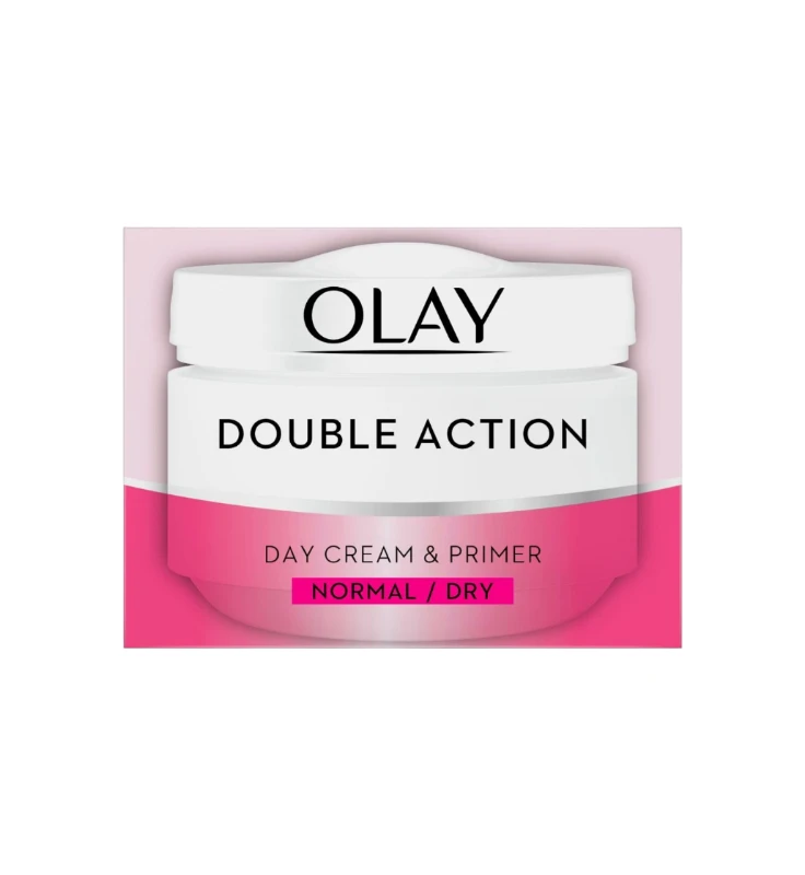 Olay Double Action Day Cream & Primer for Normal to Dry Skin is a multi-benefit daily moisturizer that hydrates, nourishes, and preps your skin for flawless makeup application. Enriched with Hydra-Renewal Complex and Vitamin E, this dual-purpose cream provides long-lasting moisture while creating a smooth, velvety base for makeup. Its rich, creamy texture instantly absorbs into the skin, restoring softness and elasticity without leaving a greasy residue.