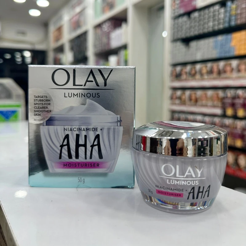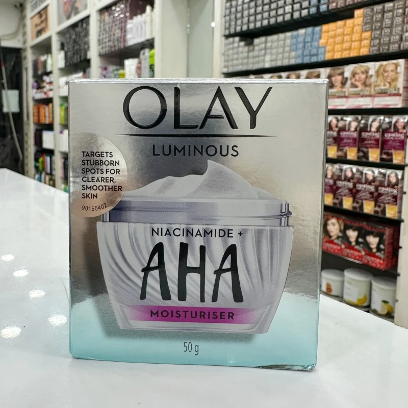 Olay Luminous Niacinamide + AHA Moisturiser is a potent daily cream developed to visibly reduce stubborn dark spots, acne marks, and uneven skin tone while delivering comfortable hydration. Infused with niacinamide (vitamin B3) that penetrates deeply and AHA (lactic acid) which gently exfoliates the surface, this formula improves skin clarity and smoothness. It also features vitamin C and pro-vitamin B5 for added radiance and skin-barrier support. Lightweight and fast absorbing, the cream is suitable for normal, combination, and oily skin types needing tone correction and texture refinement. With consistent use, skin appears clearer, smoother, and more luminousβhelping your complexion look visibly even and fresh.