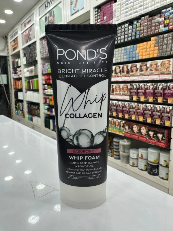 Ponds Bright Miracle Ultimate Oil Control Whip Collagen Facial Foam deeply cleanses, controls shine, and brightens skin. Collagen and niasorcinol refine pores and enhance firmness, making it perfect for oily, combination skin seeking long-lasting clarity and matte radiance.