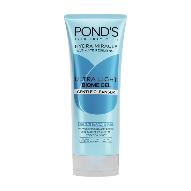 Pond’s Hydra Miracle Ultimate Resilience Ultra Light Biome Gel Gentle Cleanser is a refreshing, microbiome-friendly gel cleanser designed to deeply clean while preserving essential moisture. Formulated with Hydra Biome Technology, it supports the skin’s natural barrier, helping it stay resilient against dryness, pollution, and everyday stressors. Its ultra-light gel texture creates a soft foam that removes dirt, sunscreen, excess oil, and impurities without stripping or irritating the skin.