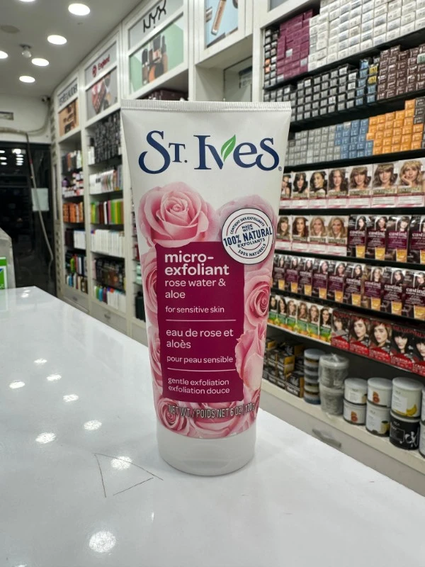 St. Ives Micro Exfoliant Rose Water & Aloe Scrub gently refines skin texture with micro exfoliants. Infused with soothing rose water and hydrating aloe, it leaves your skin soft, smooth, and glowing. Ideal for daily use on all skin types.