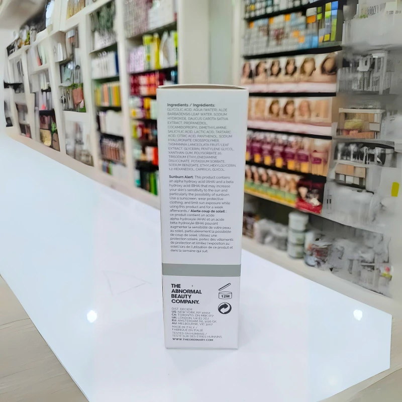 The The Ordinary AHA 30% + BHA 2% Peeling Solution is a powerful at-home exfoliating treatment that targets dullness, uneven texture, blemishes, and congestion. With a potent blend of alpha hydroxy acids (glycolic, lactic, tartaric, citric acids) and beta hydroxy acid (salicylic acid), it deeply exfoliates the skin’s surface and penetrates pores to remove dead cells, unclog impurities, and promote cell turnover. The result is smoother, brighter, and clearer-looking skin. Enhanced with Tasmanian pepperberry, hyaluronic acid, and black carrot extract, this formula minimizes irritation, hydrates, and protects skin against oxidative stress. Its striking red solution delivers visible results with consistent weekly use.