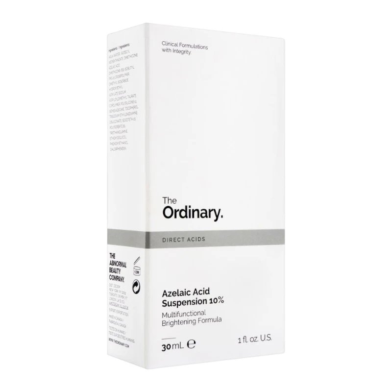 The The Ordinary Azelaic Acid Suspension 10% is a multifunctional brightening formula designed to improve uneven tone, refine skin texture, and reduce the appearance of blemishes. Azelaic acid, a naturally occurring antioxidant found in grains, offers a wide range of skin benefits. At a 10% concentration, it visibly brightens the complexion, minimizes redness, and helps fade post-acne marks while supporting a smoother, more even texture. Its lightweight, silicone-based cream-gel formula glides effortlessly onto the skin, leaving a soft-focus finish without greasiness. Suitable for daily use, this product delivers powerful antioxidant protection while targeting multiple skin concerns for a clearer, more radiant complexion.