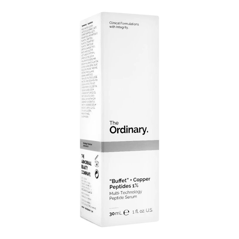 The The Ordinary Buffet + Copper Peptides 1% is a powerful all-in-one anti-aging serum designed to target multiple signs of aging and skin health. Enriched with copper peptides, this advanced formula supports overall skin renewal, elasticity, and barrier strength while promoting a firmer and more youthful appearance. The serum combines a wide range of peptide complexes, amino acids, and hyaluronic acid to hydrate, smooth, and plump the skin, reducing the look of fine lines and wrinkles. The addition of copper peptides helps improve skin tone, enhance repair, and defend against visible damage from daily stressors. Its lightweight, water-based texture absorbs quickly, making it easy to incorporate into any skincare routine for radiant, resilient skin.