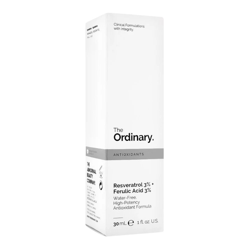 The The Ordinary Resveratrol 3% + Ferulic Acid 3% is a high-potency antioxidant serum designed to protect skin from environmental stressors while improving radiance and overall skin health. With a unique combination of resveratrol, a powerful antioxidant derived from red grapes, and ferulic acid, a plant-based antioxidant, this formula helps neutralize free radicals that contribute to premature aging, dullness, and loss of firmness. Unlike many antioxidant products diluted in water, this serum is formulated in a lightweight, oil-based texture that ensures stability and potency of its ingredients. With regular use, it helps improve visible signs of aging, enhances skin resilience, and promotes a smoother, more youthful-looking complexion.